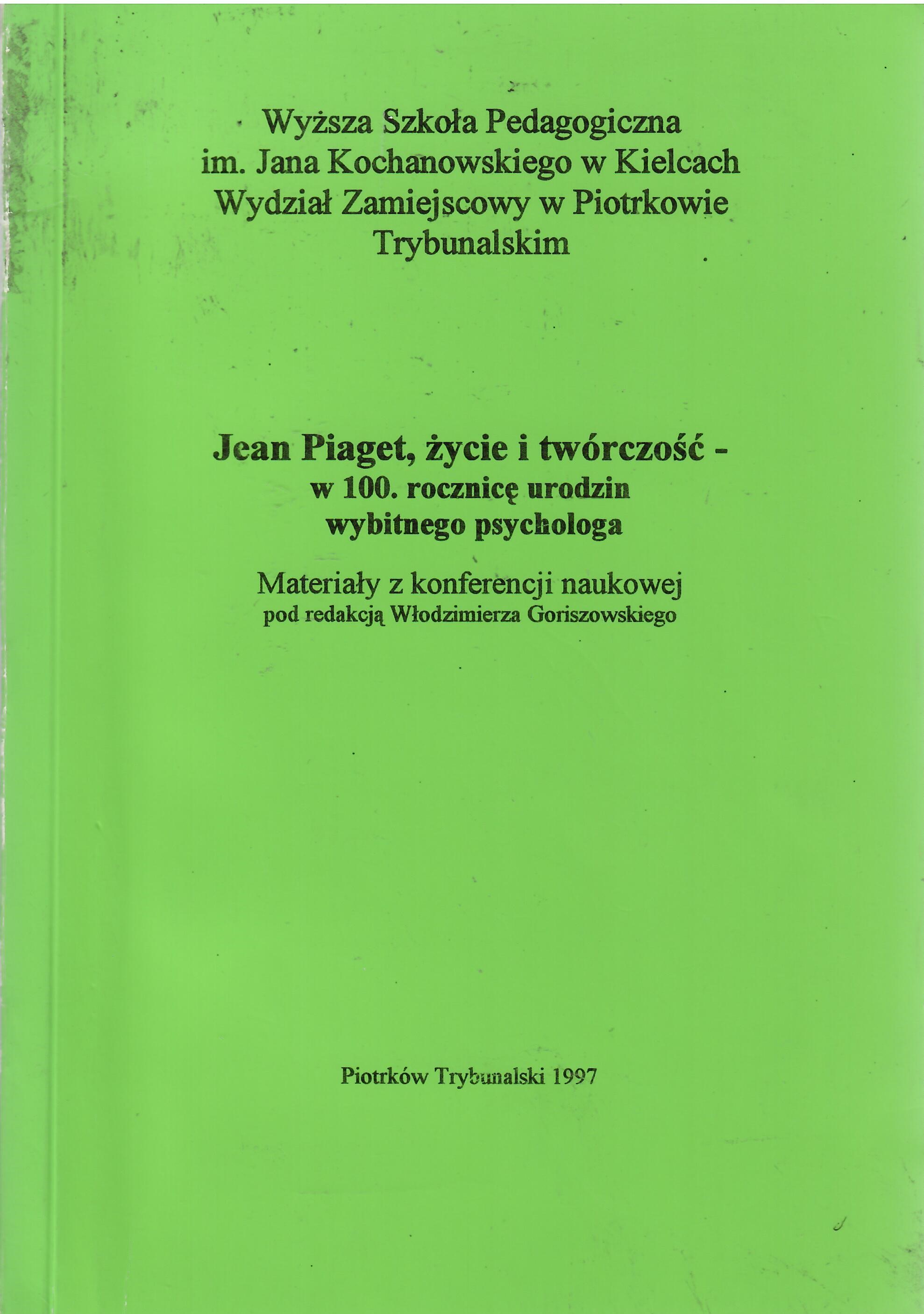 Materiały z Konferencji Naukowej na temat "Jean Piaget, życie i twórczość : w 100. rocznicę urodzin wybitnego psychologa.